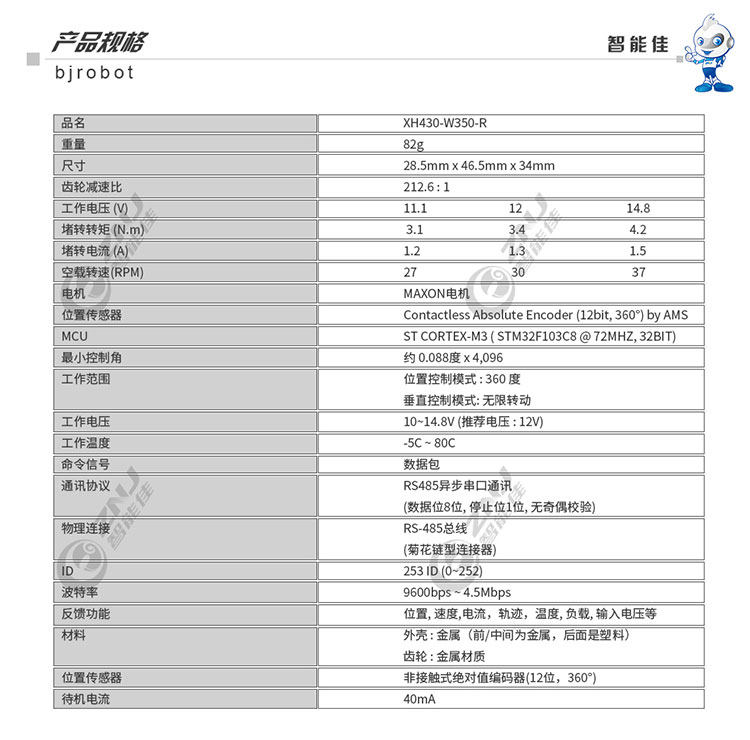 产品名称:XH430-W350-R/T 舵机 产品类别:伺服舵机 产品摘要:点击购买... 联系电话:010-82488500 E-mail:znj@bjrobot.com