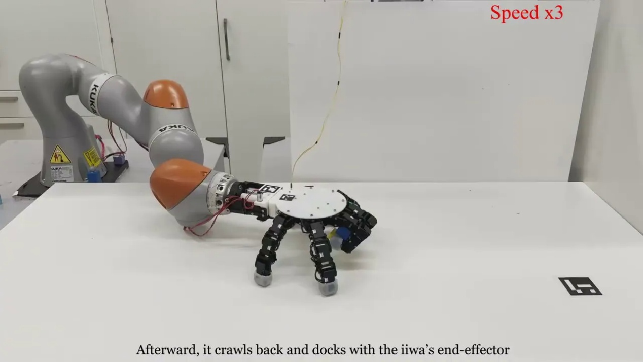 你是否有过这样的经历:为触碰够不到的物品,不得不借助工具或调整身体姿势?而这一场景对这款机械手而言完全不成问题,因为它可以与机械臂分离独立工作。机械手的每一根手指都能自主运作,使其能够 “爬行” 至机械臂的操作范围之外。