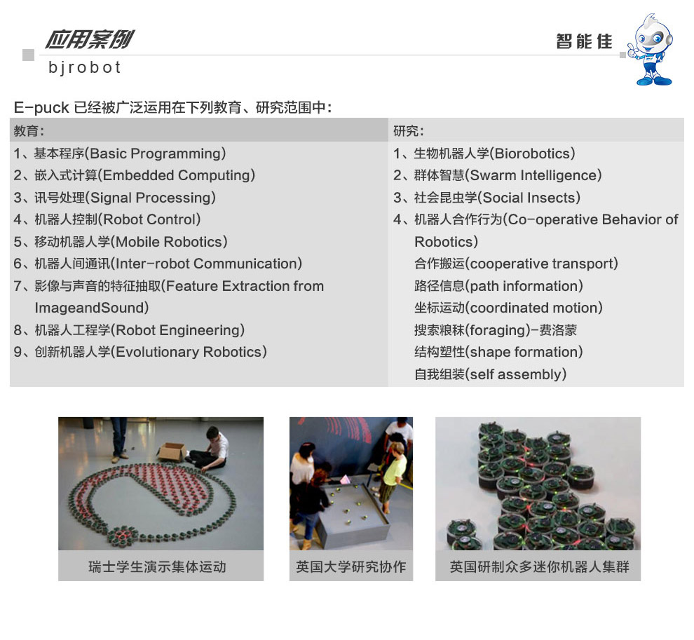 ƷƣE-puck(伊普克)嵌入式机器人 Ʒ轮式机器人 ƷժҪE-puck(伊普克) 是面向大学教育研究用途的开源机器人,机械结构清晰易懂,强健,维护简单,维修成本低廉,对用户友善,具有很好的适应力和开发潜力。... ϵ绰010-82488500 E-mailznj@bjrobot.com