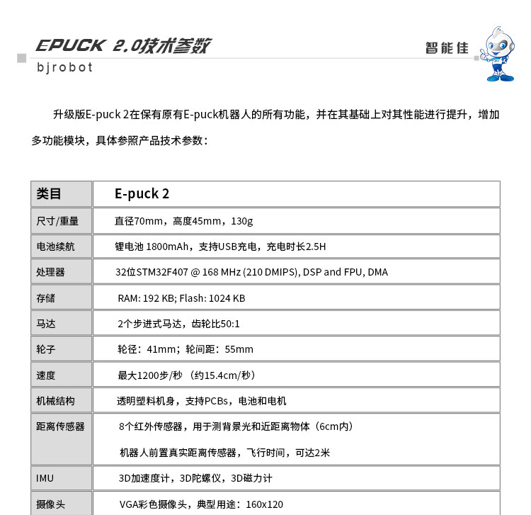 ƷƣEpuck 2 嵌入式机器人 Ʒ轮式机器人 ƷժҪ 伊普克2 教学研发平台专用机器人... ϵ绰010-82488500 E-mailznj@bjrobot.com