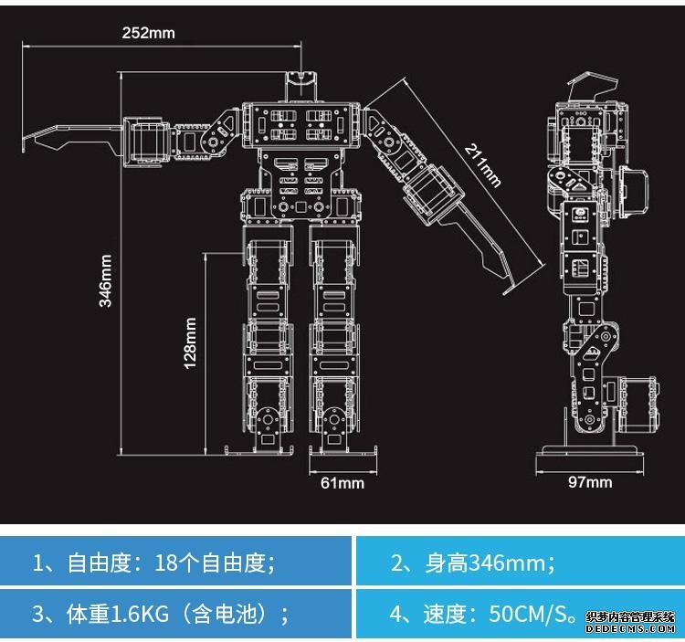 | 8个数字舵机AX-12A; | 10个数字舵机AX-18A ; |