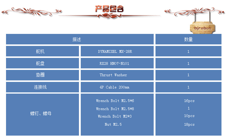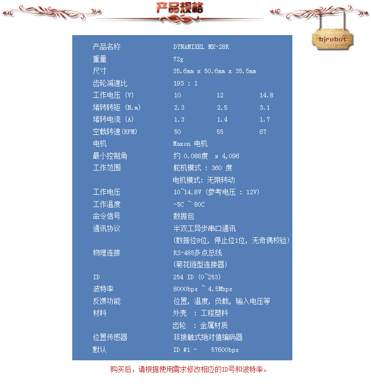 ƷƣMX-28舵机 Ʒ伺服舵机 ƷժҪ MX-28舵机性能优良、质量可靠、控制精度高,并且可做转轮使用,适合各种功能和尺寸的机器人... ϵ绰010-82488500 E-mailznj@bjrobot.com