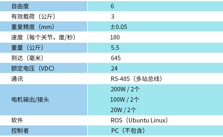 *注意:不含控制器或电脑,此手臂适合电脑或工控机控制。