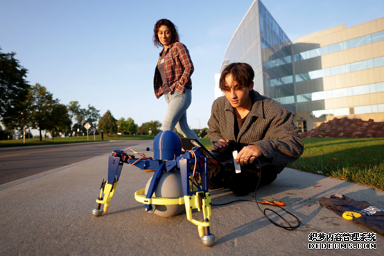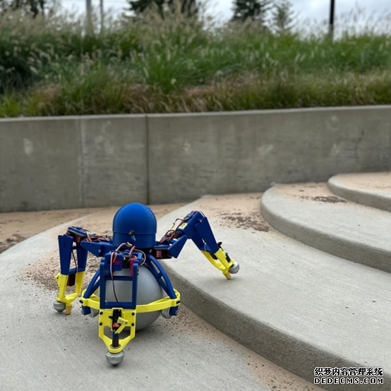 摩尔说:“由于中心球体和多条腿的结合,SKOOTR非常稳定。”“我们已经用SKOOTR做了很多实验,基本上不可能在它运行时翻转它。它的能力也比你从“滑行”的步态中想象的要多得多。SKOOTR用腿将球体抬起,可以克服其他滚动机器人难以克服的障碍。SKOOTR甚至可以爬楼梯。”